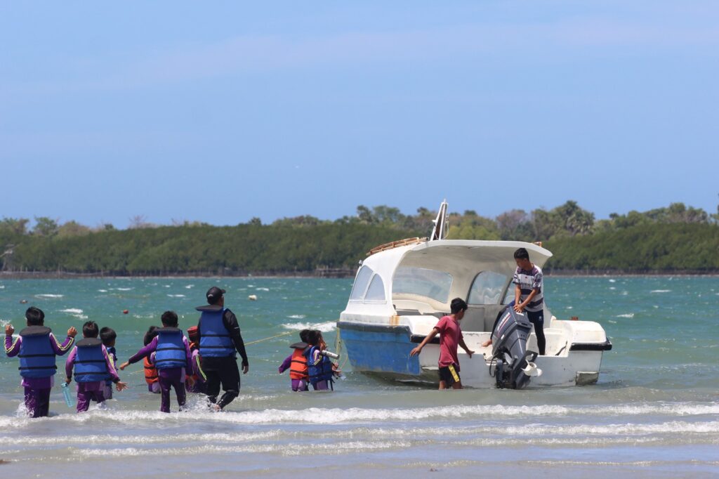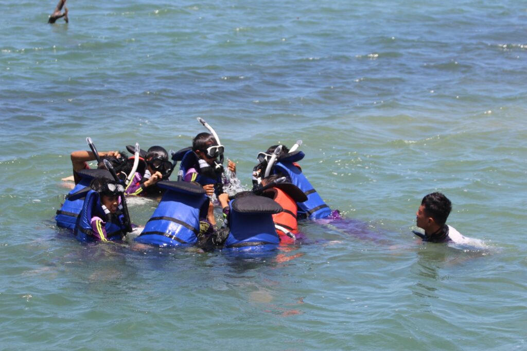 Salah satu kegiatan utama dalam rangkaian kunjungan ini adalah Program Ekosistem Laut. Melalui kegiatan ini, peserta diajak turun langsung ke laut untuk melakukan snorkeling. Bukan sekadar wisata air, snorkeling di PPLH Puntondo menjadi media pembelajaran interaktif. Para siswa dan siswi bisa menyaksikan secara nyata keindahan terumbu karang, aneka biota laut, serta dinamika kehidupan bawah laut yang selama ini hanya mereka kenal melalui buku atau gambar. Dengan cara ini, teori yang biasanya diperoleh di ruang kelas kini terhubung langsung dengan pengalaman nyata di lapangan.