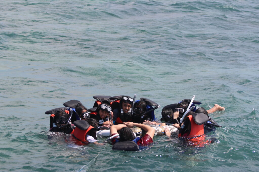 Program utama yang diikuti peserta adalah Ekola (Ekosistem Laut) dan Pengolahan Sampah. Dalam kegiatan Ekola, siswa diajak menyusuri kawasan Puntondo hingga ke pesisir pantai dan area konservasi mangrove, lalu dilanjutkan dengan praktik snorkeling untuk melihat langsung keindahan bawah laut. Melalui pengalaman ini, peserta tidak hanya mengenal fungsi mangrove sebagai pelindung pantai dan habitat biota, tetapi juga menyaksikan secara nyata keragaman hayati laut yang menjadi penopang keseimbangan ekosistem pesisir. Kegiatan ini menjadi sarana belajar yang menyenangkan karena siswa bisa merasakan langsung bagaimana laut menyediakan manfaat ekologis yang besar bagi kehidupan.